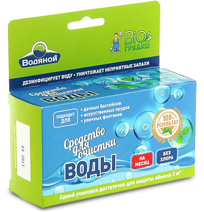 Безхлорный препарат природного происхождения для очистки воды в прудах, дачных бассейнах и фонтанах. Нетоксичен, не вызывает раздражения на коже и глазах, обладая эффективностю против патогенной микрофлоры.