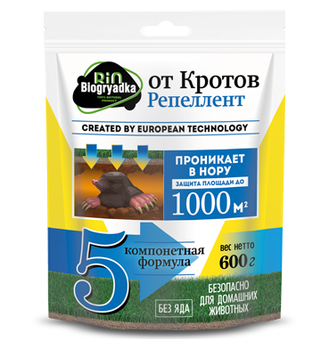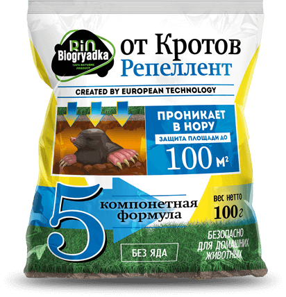 Препарат БиоГрядка содержит специально подобранную смесь эфирных масел, которая имеет раздражающее воздействие на чувствительное обоняние крота.